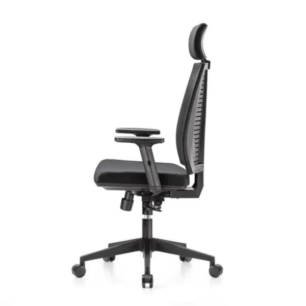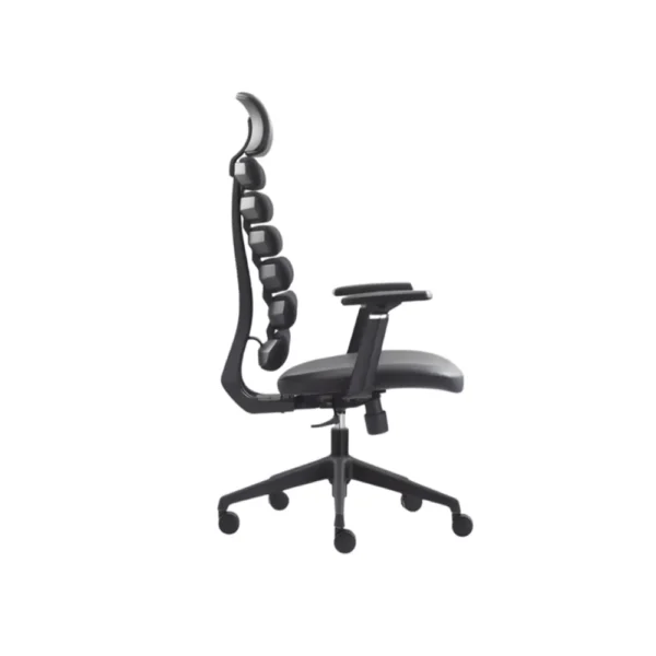 The high-back ergonomic design supports your spine’s natural curve, reducing back and neck strain. Its adjustable headrest delivers extra support for the neck and shoulders, while the lumbar support encourages proper alignment throughout the day.