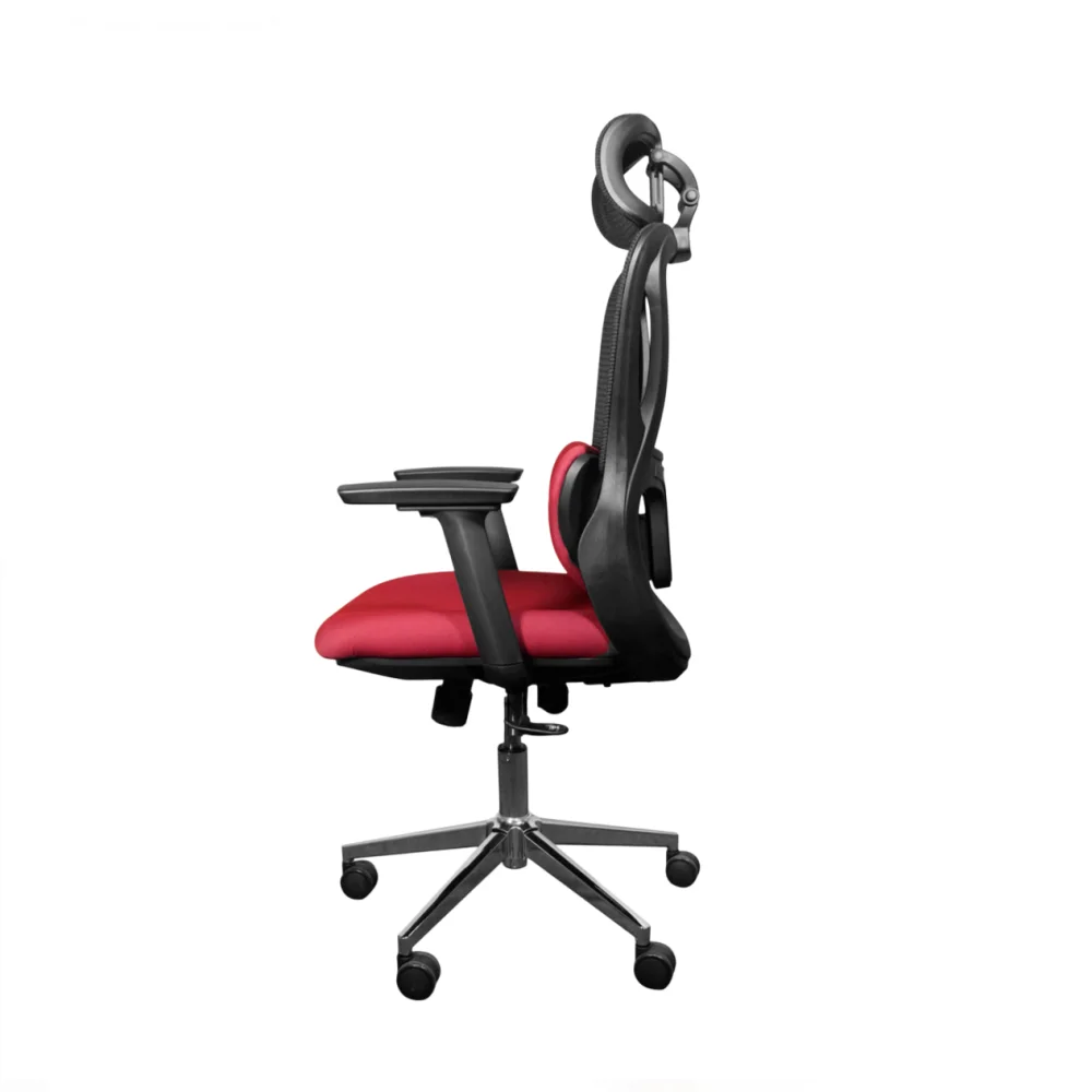 The ergonomic high-back design naturally follows your spine’s curve, reducing strain and promoting healthy posture during long hours of work. Its adjustable headrest and lumbar support offer personalized comfort, while the breathable mesh backrest ensures ventilation to keep you cool throughout the day.