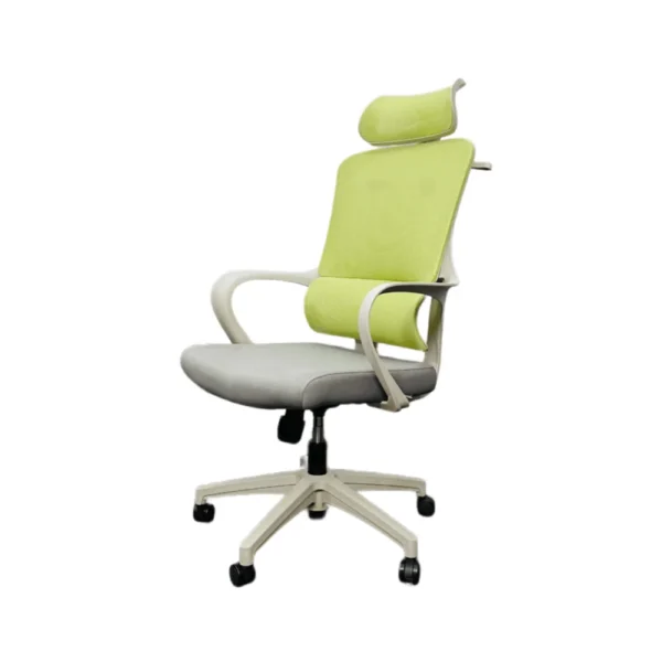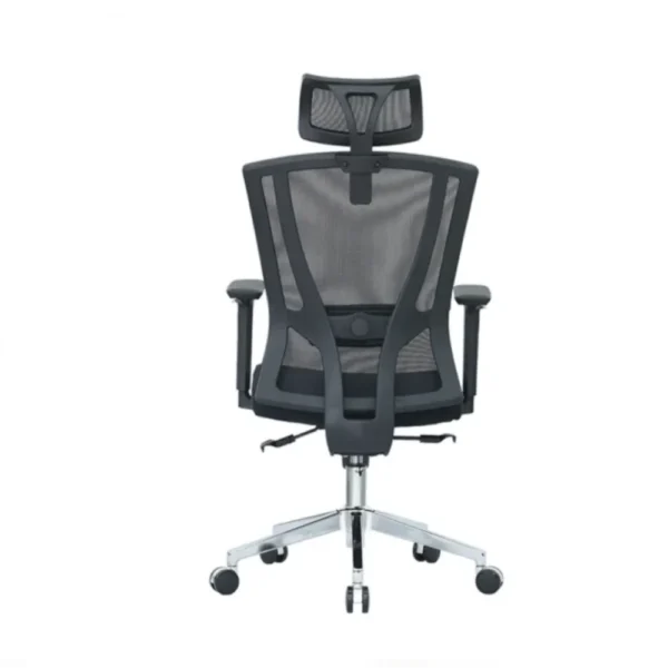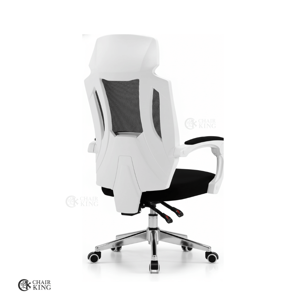 The chair features a high-back ergonomic structure with a breathable open-mesh backrest that allows continuous airflow, keeping you cool and comfortable. The resilient mesh adapts to the natural curve of your spine, helping reduce lower back pressure and muscle fatigue while promoting healthy posture.