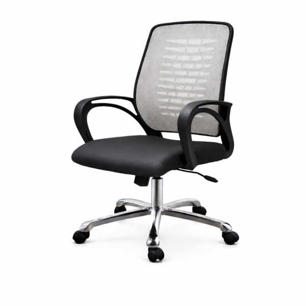 Adding to its durability and aesthetic appeal is the chair’s chrome base. This robust base not only strengthens the overall structure but also provides a sleek, polished look that enhances any office or home setting. The chrome finish is resistant to corrosion, ensuring that the chair maintains its pristine appearance over time.